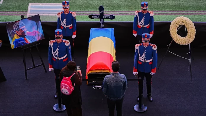 La ceremonia de entierro, marcada por el sonido del himno nacional y las salvas de cañón, fue televisada por gran parte de las emisoras del país, reflejando el impacto de su figura en la sociedad rumana. El féretro, envuelto en la bandera nacional, fue trasladado a una iglesia cuya entrada lucía una alfombra de pétalos de rosas blancas y rojas, colores representativos del Dinamo de Bucarest, club donde dejó una huella imborrable.